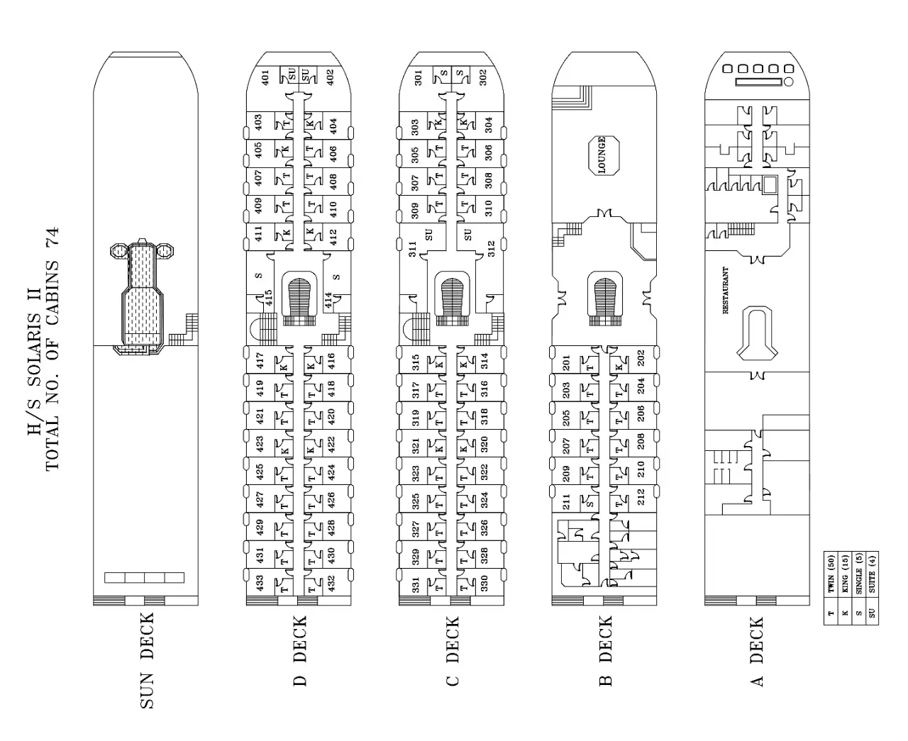Die Solaris II ist ein Kreuzfahrtschiff der gehobenen Kategorie (Landeskategorie: 5-Sterne*). 74 Meter Lang und 14,5 Meter breit. Großzügige Kabinen und die elegant-stilvolle Einrichtung gewähren eine Nilkreuzfahrt auf höchstem Niveau. Schon der Empfangsbereich besticht durch seine prachtvoll-gediegene Ausgestaltung. Dennoch geht es an Bord recht leger zu. Die Lounge-Bar und das Sonnendeck mit Pool laden zum Entspannen ein (Sonnenliegen und Handtücher ohne Gebühr). Alle Kabinen sind ca. 24 qm groß und sind damit sehr großzügig bemessen. Als eines der wenigen Schiffe auf dem Nil verfügen die Kabinen über einen kleinen Balkon mit einer Sitzgelegenheit. Das Restaurant befindet sich im Unterdeck, direkt über der Wasserlinie, im 1.Stock befinden sich die Kabinen des Hauptdecks, im 2. Stock die Kabinen des Mitteldecks. Im 3.Stock sind die Kabinen des Oberdecks untergebracht.